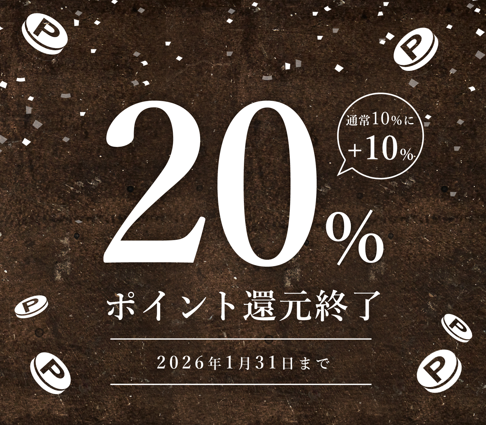 - ご好評につき、ポイント20%還元キャンペーン延長決定! -