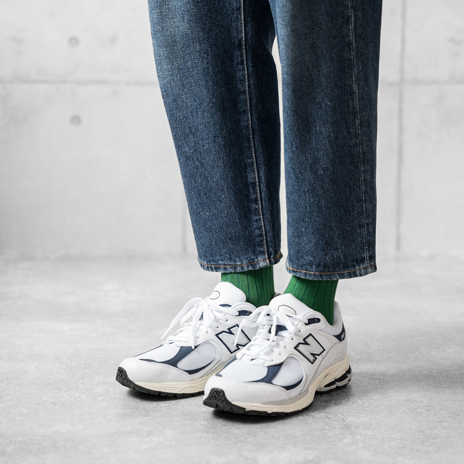 「デニム×ローファーに効かせる、チラ見せグリーン」