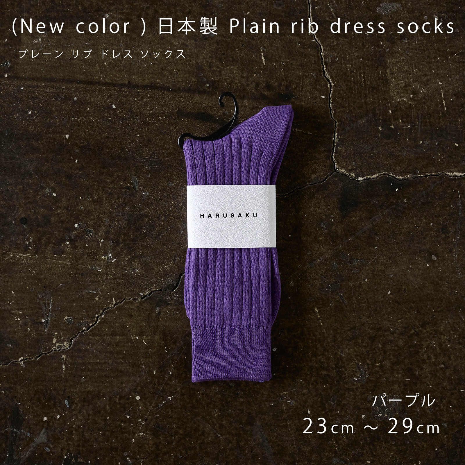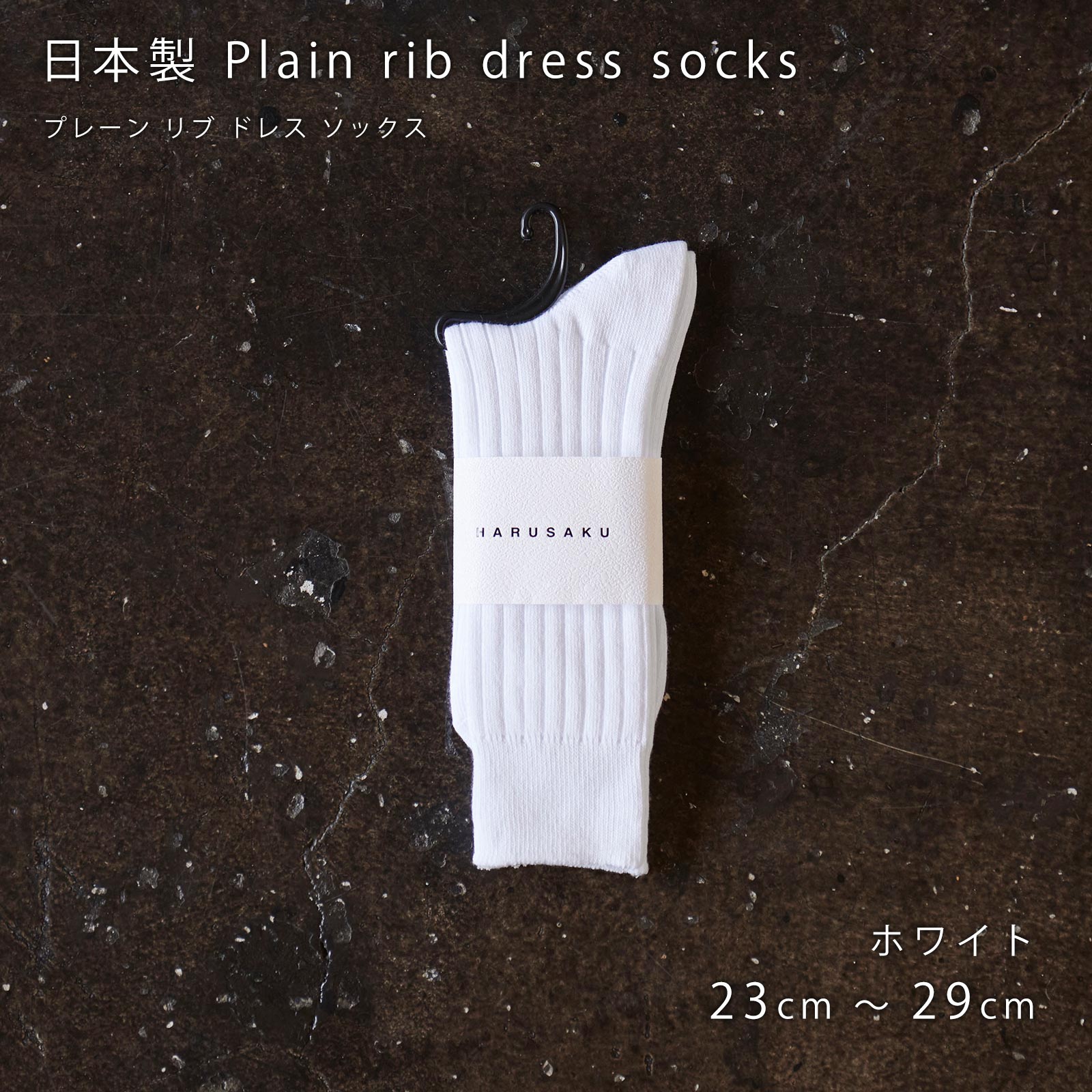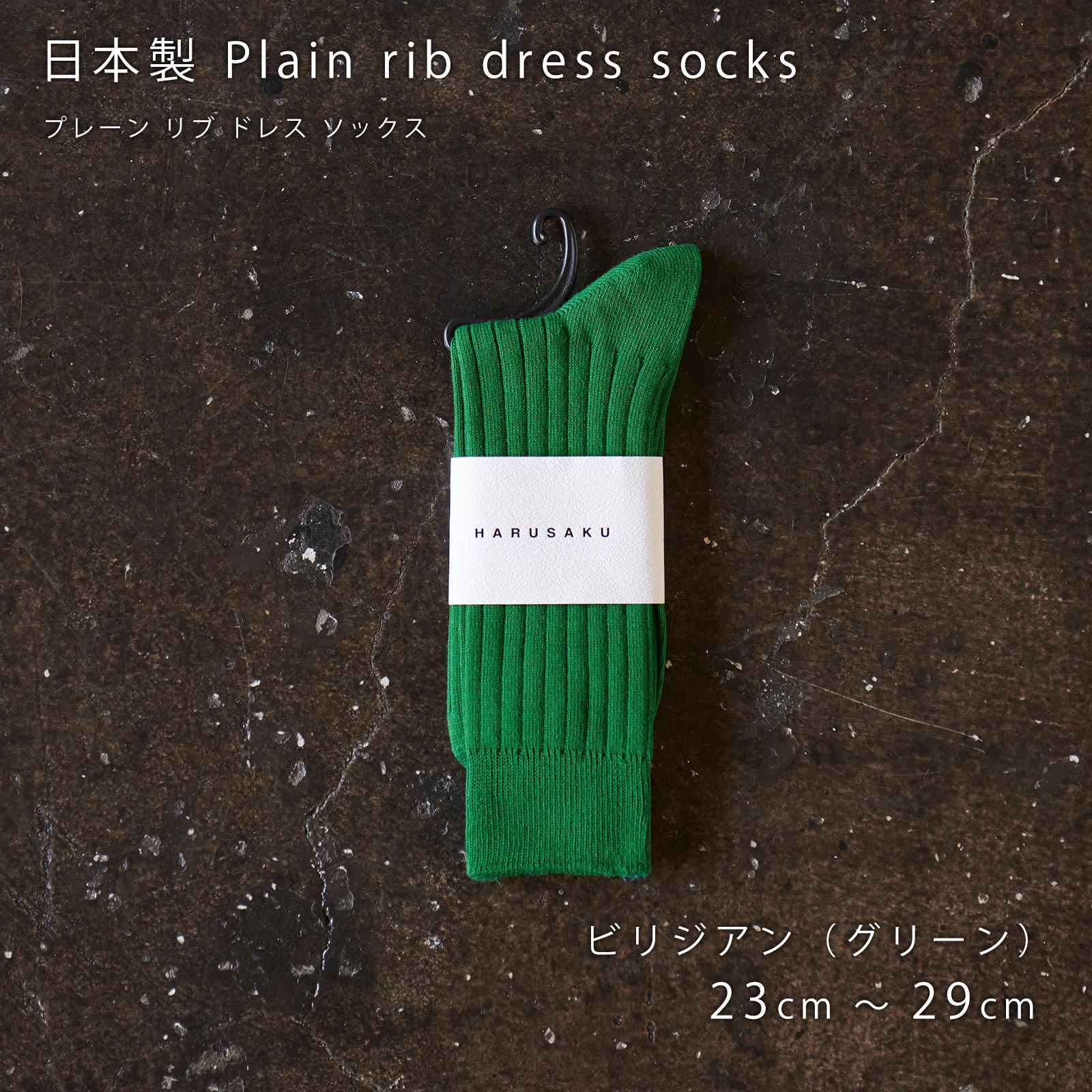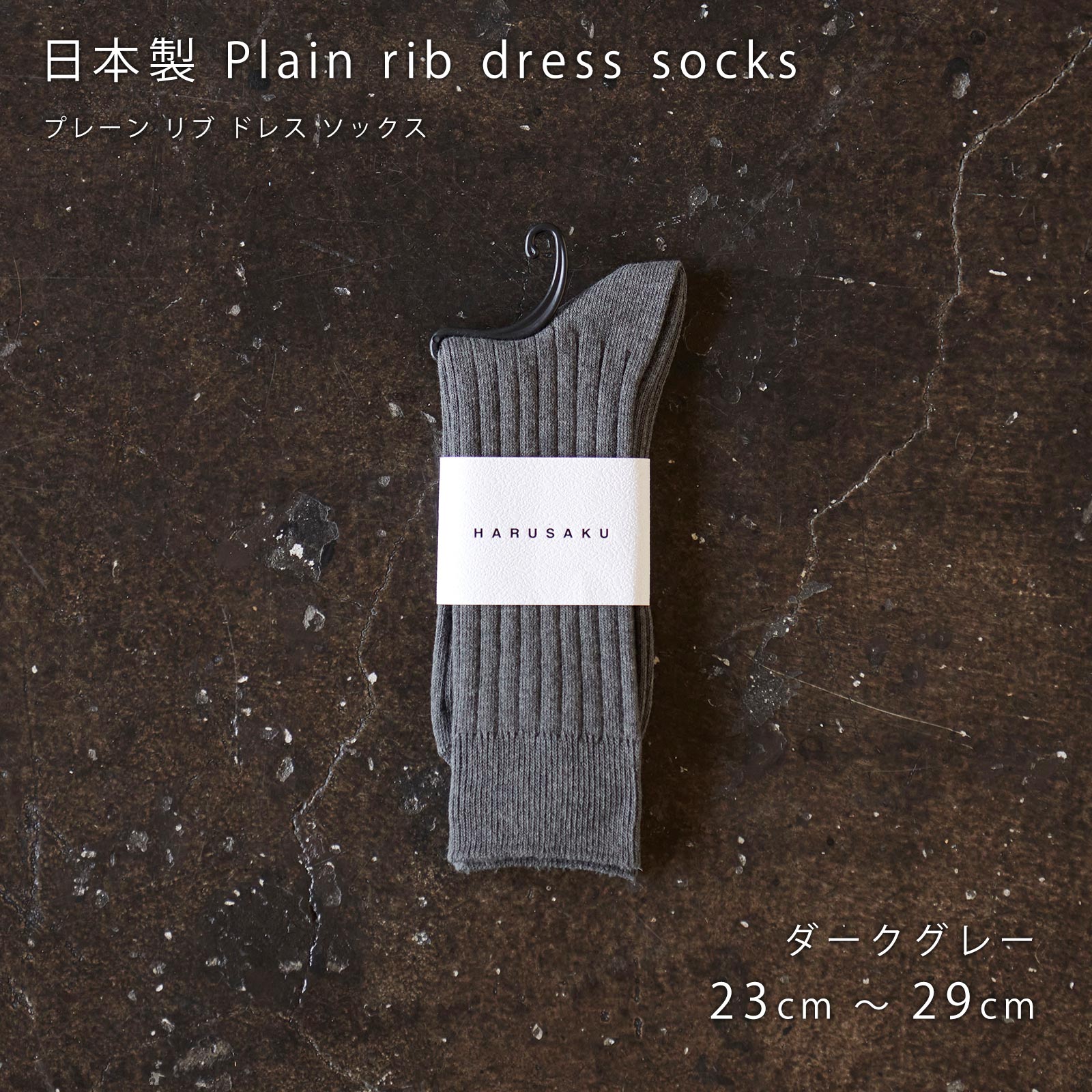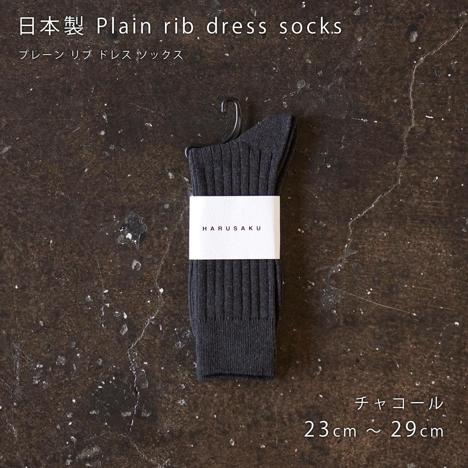 HARUSAKU(ハルサク)の国産リブソックスは、太リブ仕様で、ベーシックにさりげないドレス感をプラス。オン・オフ問わず使える万能カラーが魅力。