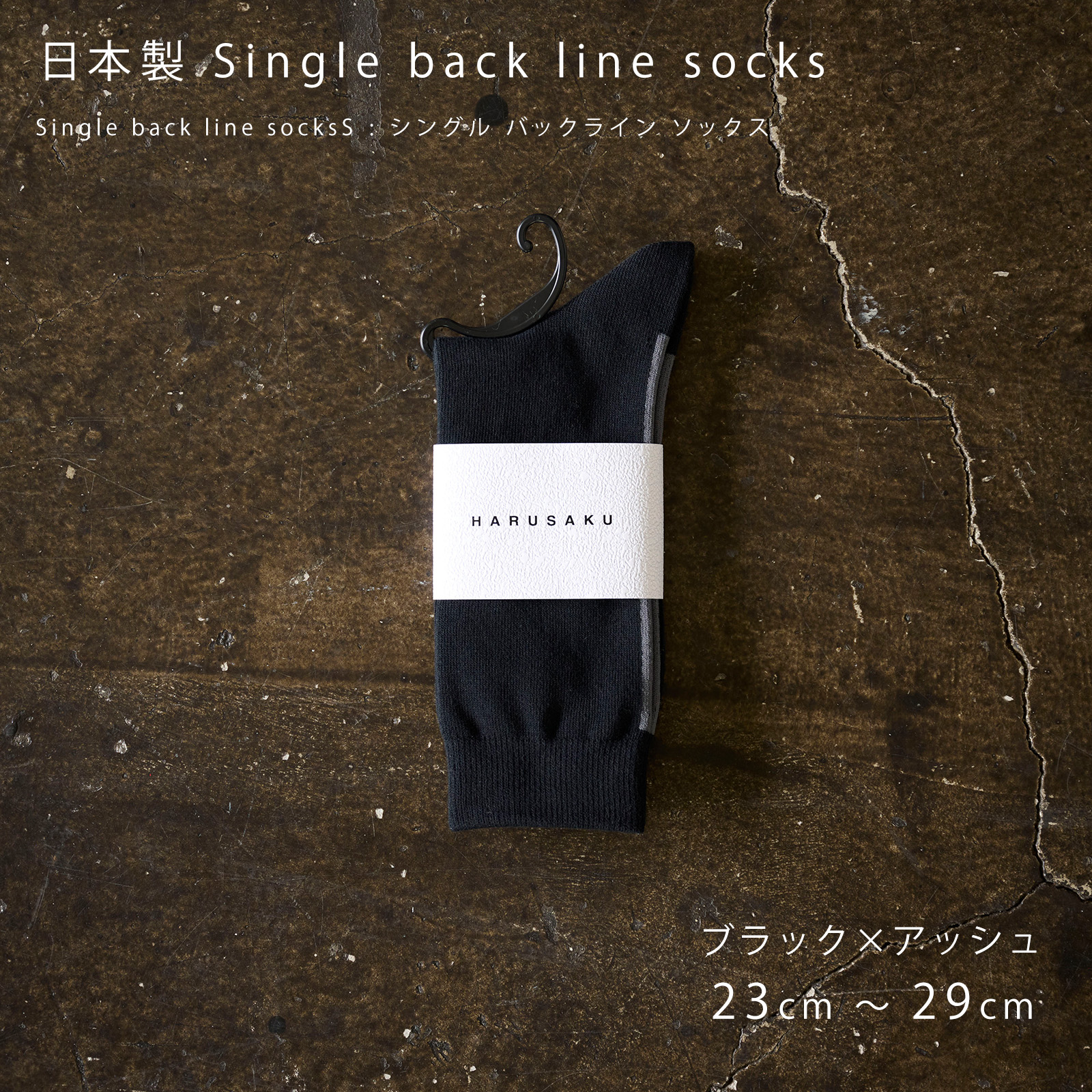 HARUSAKU(ハルサク)の国産バックラインソックスは、バックラインがアクセントに。後ろ姿に遊び心をプラス。